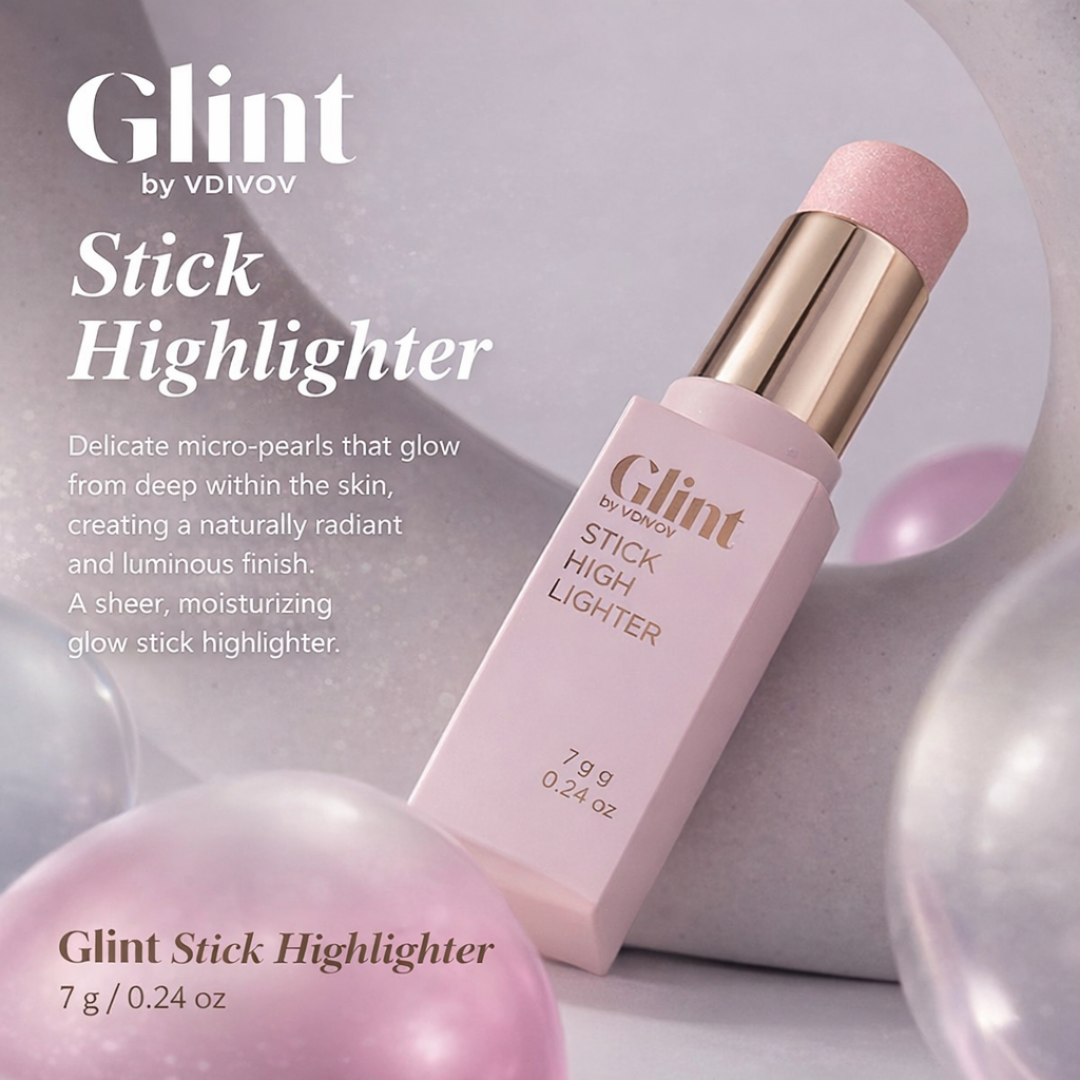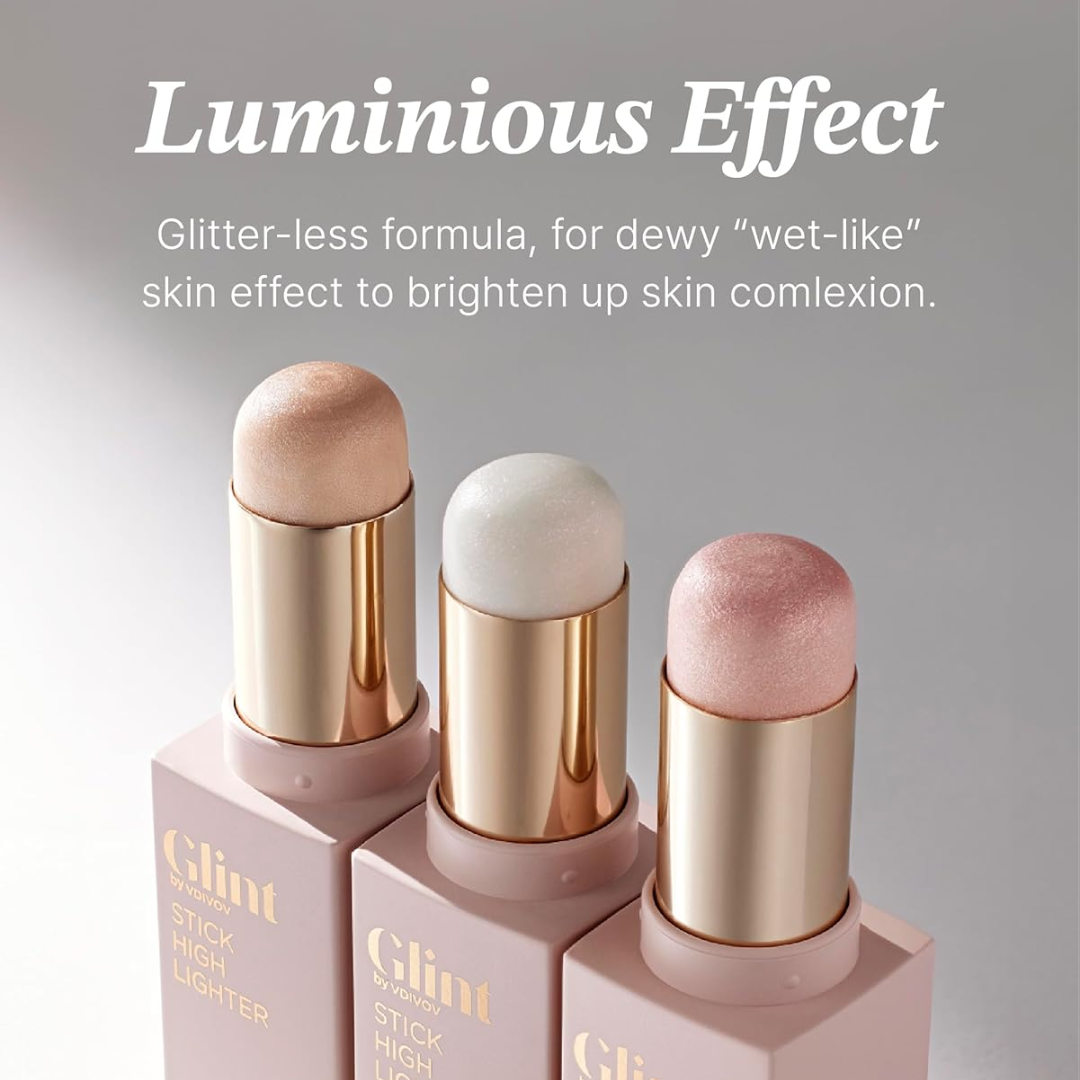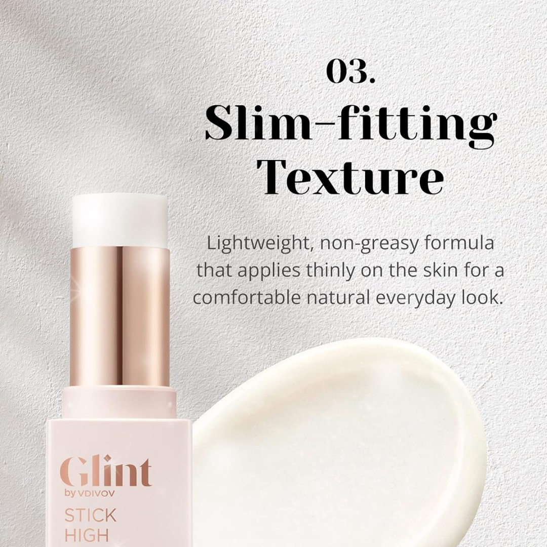 Meet the Glint by VDIVOV Stick Highlighter—your new go-to for a dewy, luminous, "wet-like" glow that looks natural, radiant, and effortlessly beautiful. With a glitter-free formula and delicate micro-pearls, this lightweight, non-greasy stick melts into skin for a slim-fitting texture that brightens complexion without cakey buildup. Perfect for cheeks, eyes, and body, Glint delivers buildable, natural radiance in every swipe.
