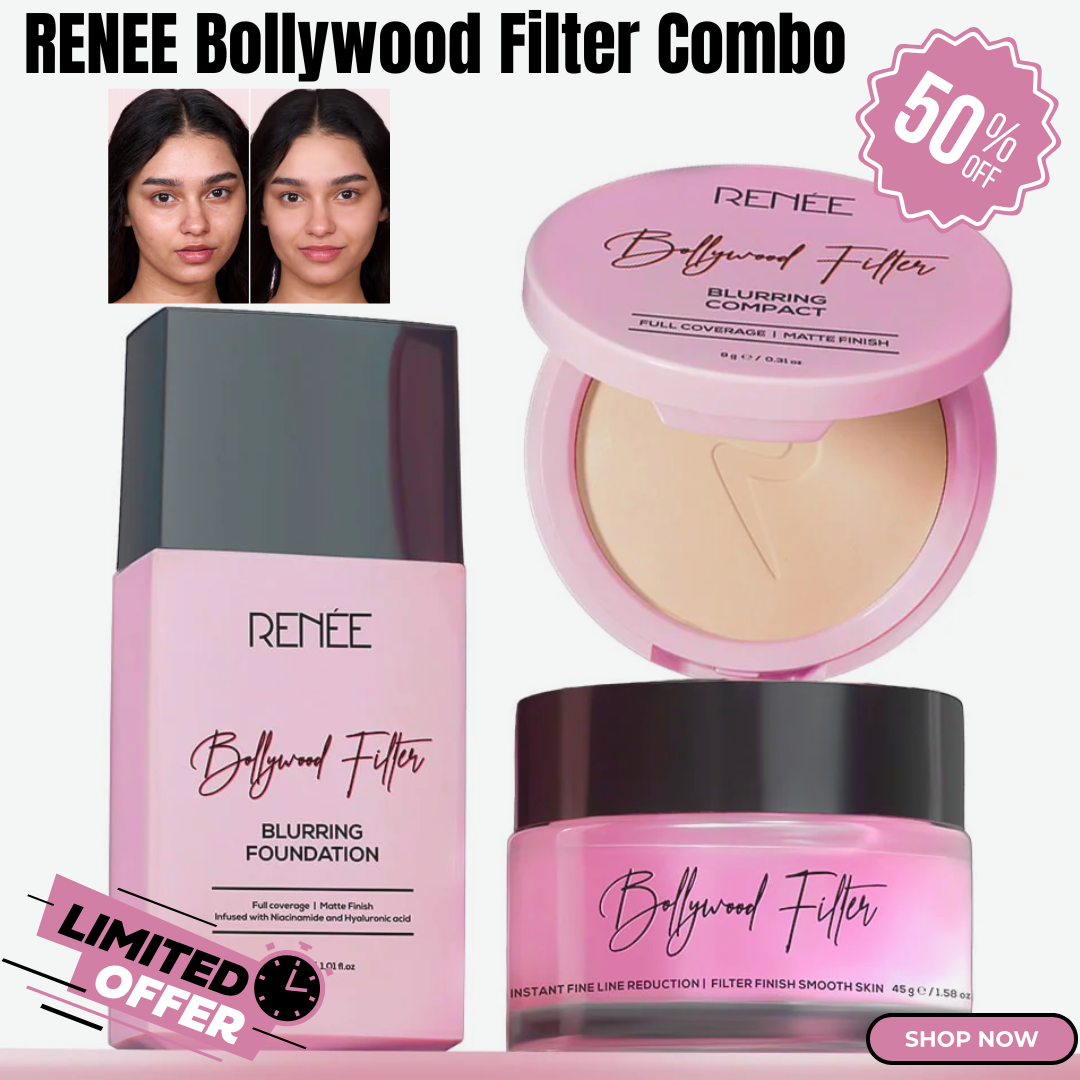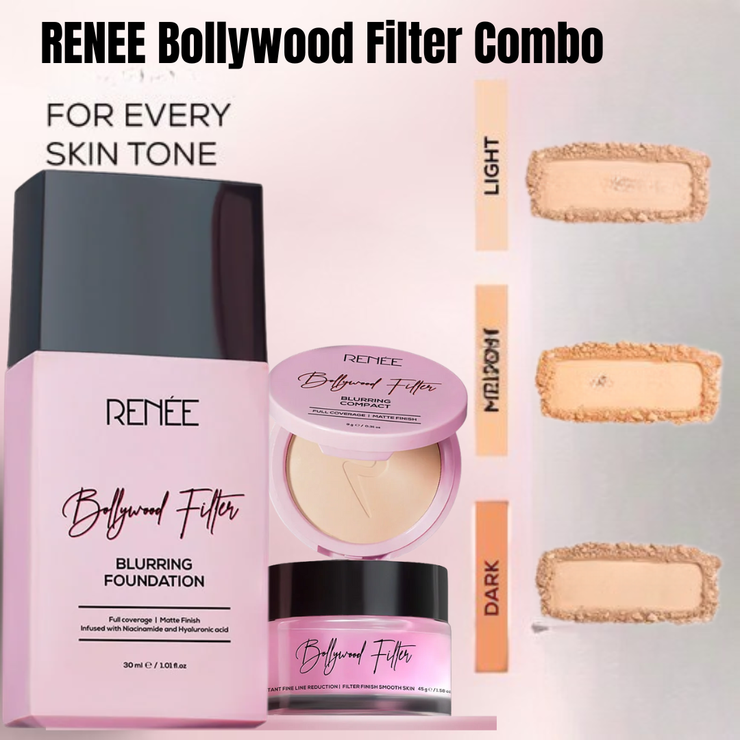Achieve a professional, camera-ready base with the RENEE Bollywood Filter 3-in-1 Flawless Base Bundle. This set combines three essential products for a smooth, poreless, and long-lasting soft matte finish that looks like a real-life filter. This limited-time offer gives you everything you need for the perfect full coverage look.